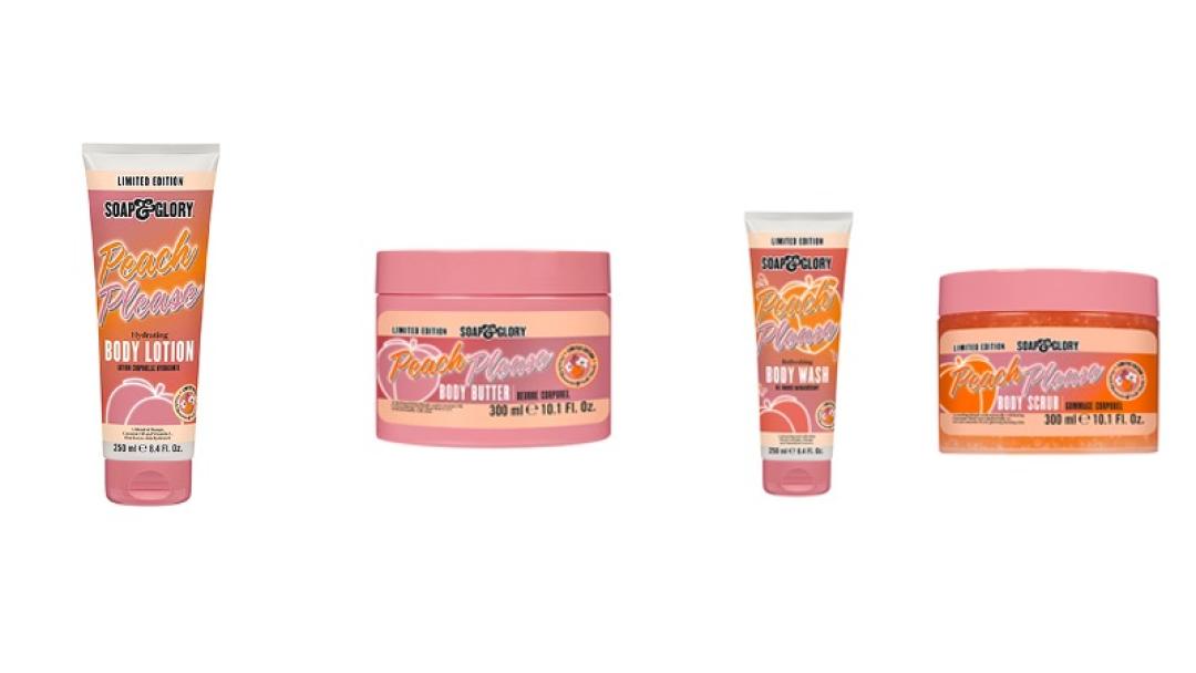 Inspired by being in a peach orchard as the trees start to blossom, meet Soap & Glory’s™ daringly delicious fruity fusion – available for a limited time only! Top notes of fresh, juicy peach and pear sorbet melt into a heart of fabulous florals of Japanese sweet pea and magnolia. In the base, a cocoon of soft yet sophisticated musk and pink amber adds a gentle warmth that’s as addictive as it is alluring.